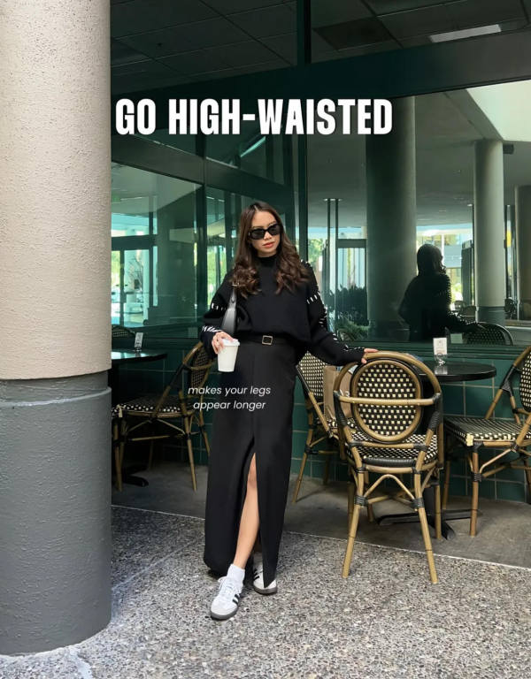 Opting for high-waisted pants or skirts is a game-changer for petites. This trick visually lengthens the legs, creating the illusion of height. Be sure to tuck in your top to maximize the effect and keep your proportions in check.